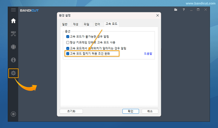 만약 기존에 고속 모드로 합치기가 잘 되던 파일이 고속모드로 합치기가 안 된다면, 고속모드 합치기 허용 조건 완화