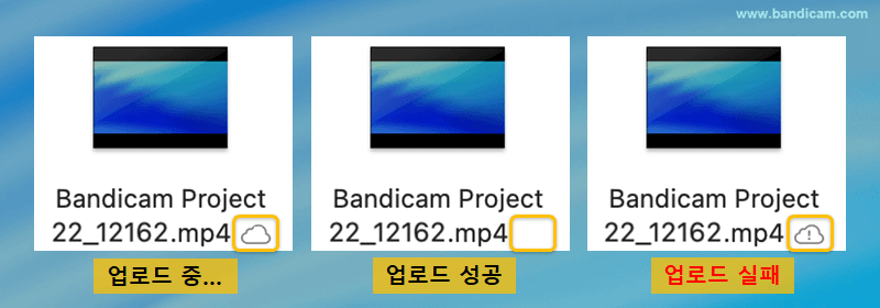 이 업로드가 완료되면 아이콘이 사라지거나 체크 표시로 바뀝니다.